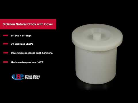This 3 gallon LLDPE crock comes with a cover and measures 11" dia. x 11" high (nominal dimensions) with a 3/16" wall. Note: Height indicated is without cover. Dimensions are nominal; see drawings for detail. A drawing is required for custom sizes and special fitting placement. Please contact our quotes department at 1-800-335-6809 or email your drawing to quotes@usplastic.com.